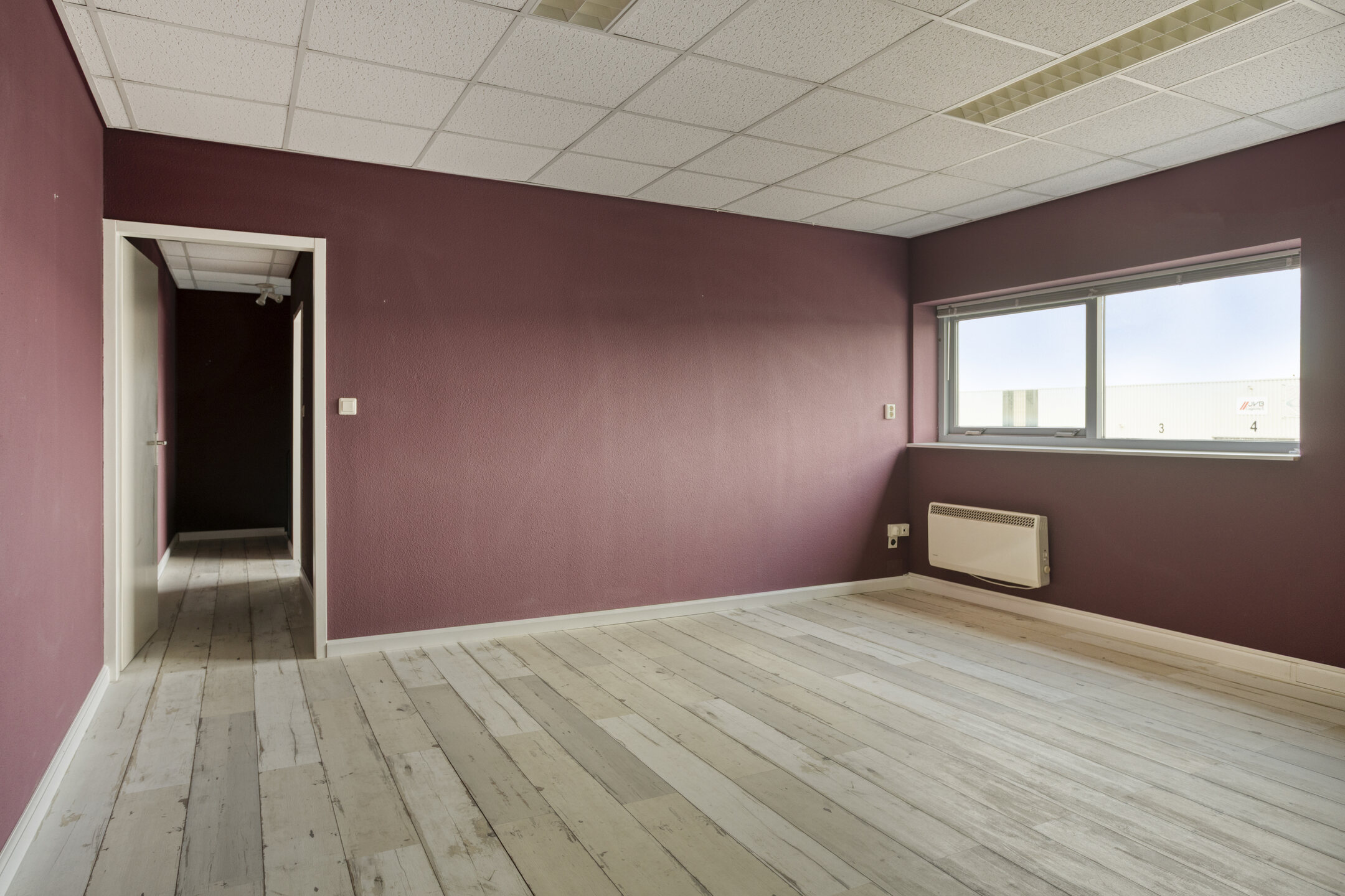 De bedrijfsloods heeft een vrije hoogte van circa 6,5 meter en is daarmee ideaal voor opslag, productie of werkplaatsactiviteiten. Toegang verloopt eenvoudig via de overheaddeur (ca. 3 meter hoog), waardoor voertuigen en goederen moeiteloos naar binnen kunnen. De loods is verder uitgerust met meerdere krachtstroomaansluitingen, een functionele heater, verlichting en diverse elektrapunten. Het kantoor is verdeeld over drie afzonderlijke ruimtes met een efficiënte indeling. Bij binnenkomst via de aparte toegangsdeur bereikt u direct de begane grond, waar zich het eerste kantoor bevindt, evenals een betegeld toilet, een pantry met close-in boiler en de meterkast (7 groepen, 2 krachtgroepen). Via de vaste trap bereikt u de eerste verdieping met de overige nette kantoor- of vergaderruimtes, afgewerkt met systeemplafond en stoffering.