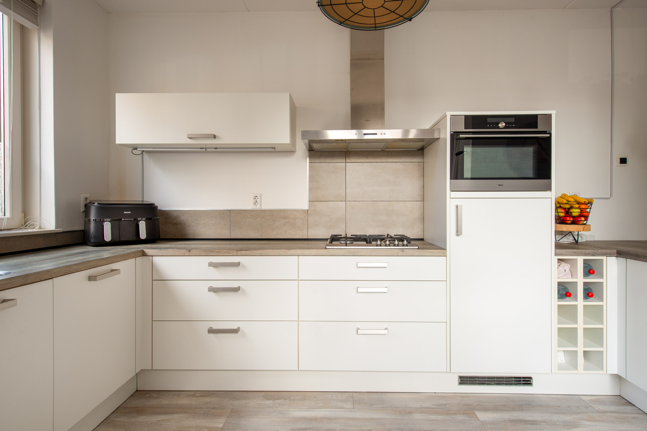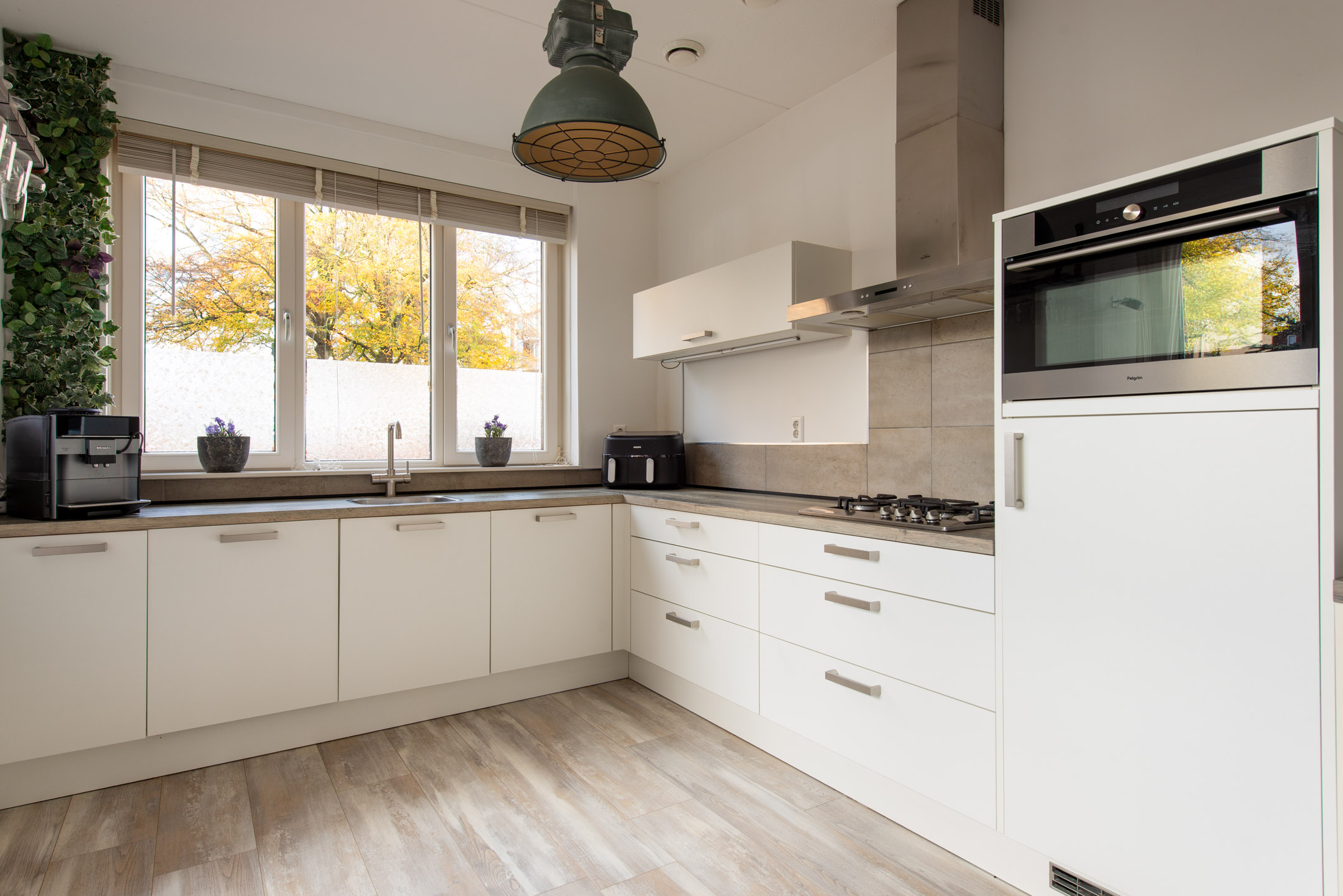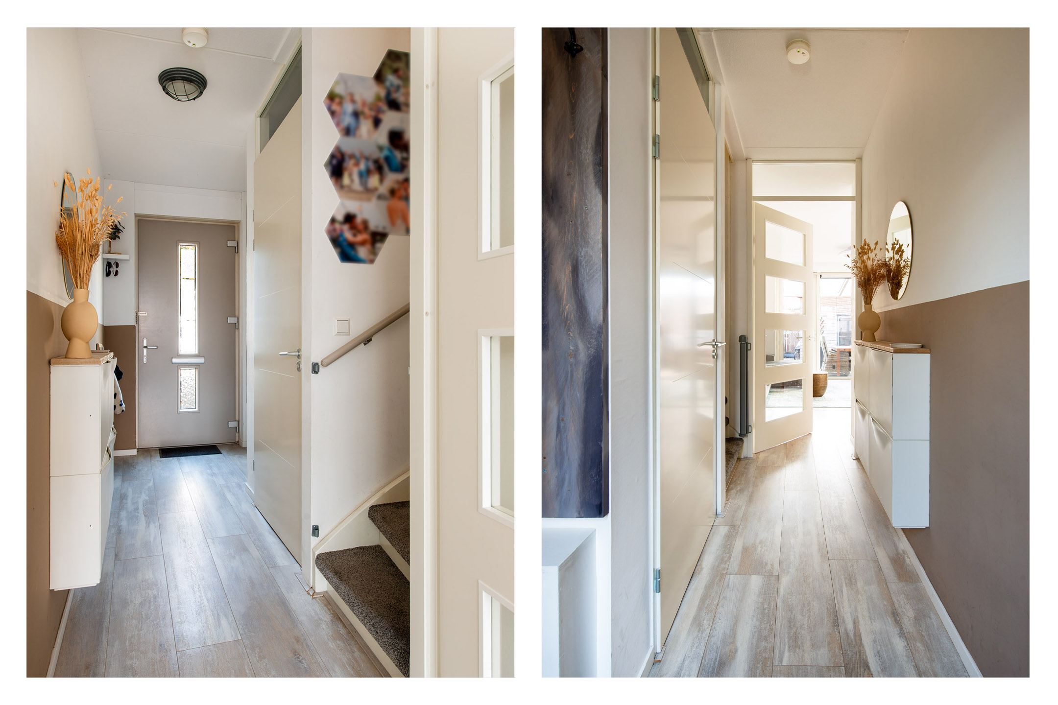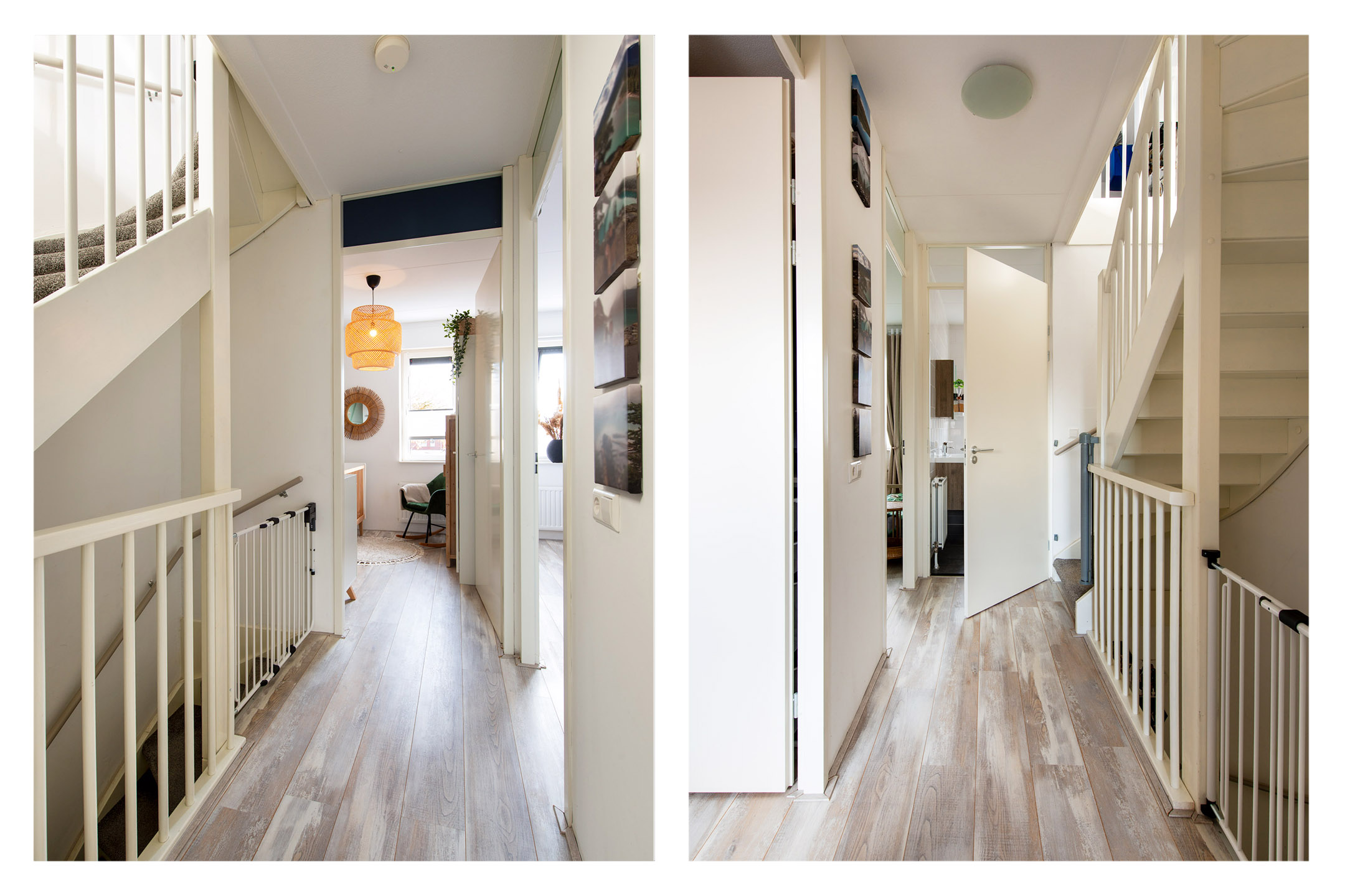 Via de verzorgde voortuin komt u binnen in de hal/entree, waar zich de meterkast en het toilet bevinden. De lichte woonkamer voelt direct ruimtelijk aan, mede dankzij de erker aan de zijkant waar momenteel de eethoek is gesitueerd. De open, moderne keuken is in een praktische U-opstelling geplaatst en beschikt over een bar en diverse inbouwapparatuur, waaronder een 4-pits gaskookplaat, vaatwasser, koelkast, afzuigkap, combi-oven en een kokend waterkraan van HOWAT voor direct heet water. De eethoek is ook zeer mooi te realiseren in de nis van de woonkamer, waardoor er ruimte ontstaat voor een ruimere eettafel waar u met familie en vrienden gezellig kunt tafelen. De woonkamer is tevens voorzien van een handige trapkast en afgewerkt met een laminaatvloer. Via de kunststof achterpui heeft u toegang tot de achtertuin, welke is uitgerust met een overkapping. Vanuit de hal/entree bereikt u via de trap de: