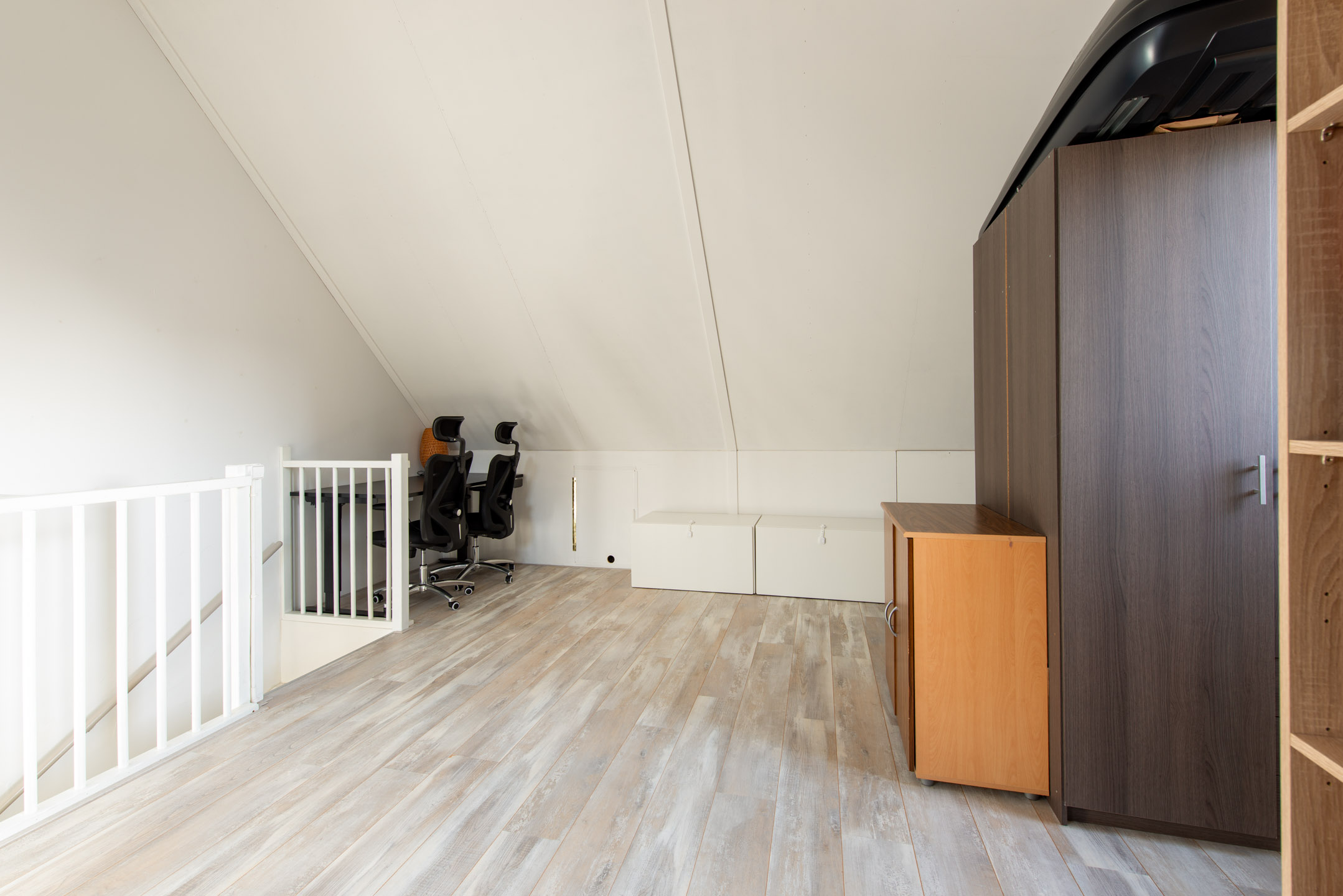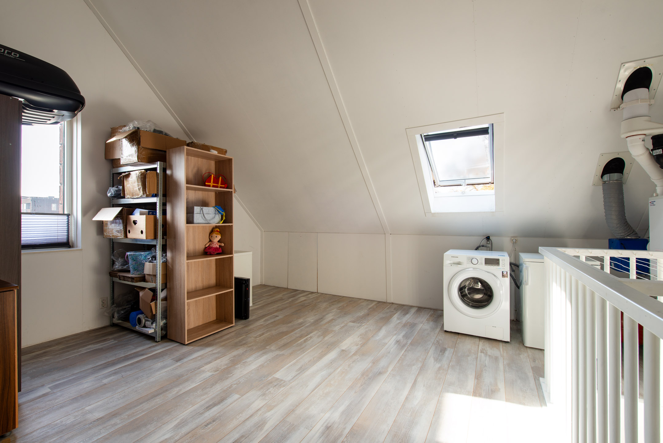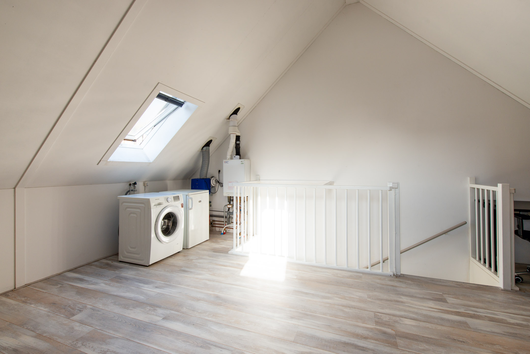 De tweede verdieping betreft een ruime, naar eigen wens in te delen verdieping. Deze ruimte kan uitstekend dienst doen als vierde slaapkamer, maar biedt ook de mogelijkheid om op te delen in een vierde en vijfde slaapkamer. Uiteraard is het ook een fijne plek voor een hobbyruimte of thuiswerkplek. Verder vindt u hier de opstelplaats van de HR-combiketel (2016) en de wasmachineaansluiting. De verdieping is aan beide zijden voorzien van praktische bergschotten, ideaal voor extra opbergruimte.
