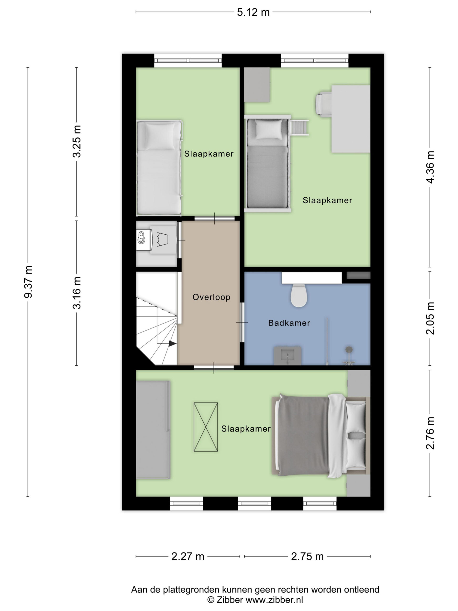 Slaapkamer 2 – achterzijde (ca. 12 m²)